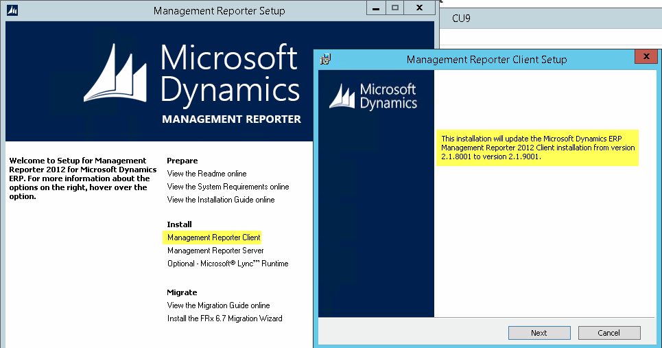 The upgrade I just showed you was CU9 which contains a lot of new and improved features. If you installed Management Reporter using AX2012 R2 Setup which came with CU7, you are most likely on Management Reporter CU7 and you should really consider upgrade to the latest version. Obviosuly, AX2012 CU is not the same as Management Reporter CU - but you knew that already.